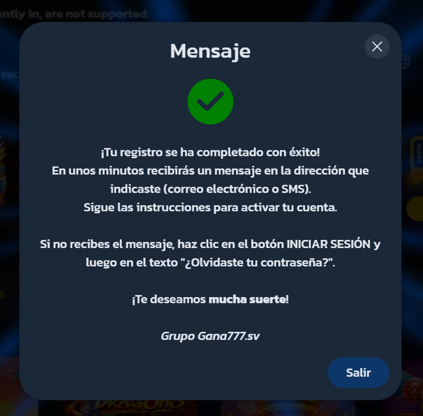 Después de completar el registro, deberías tener el siguiente mensaje en la pantalla que indica que te has registrado con éxito.